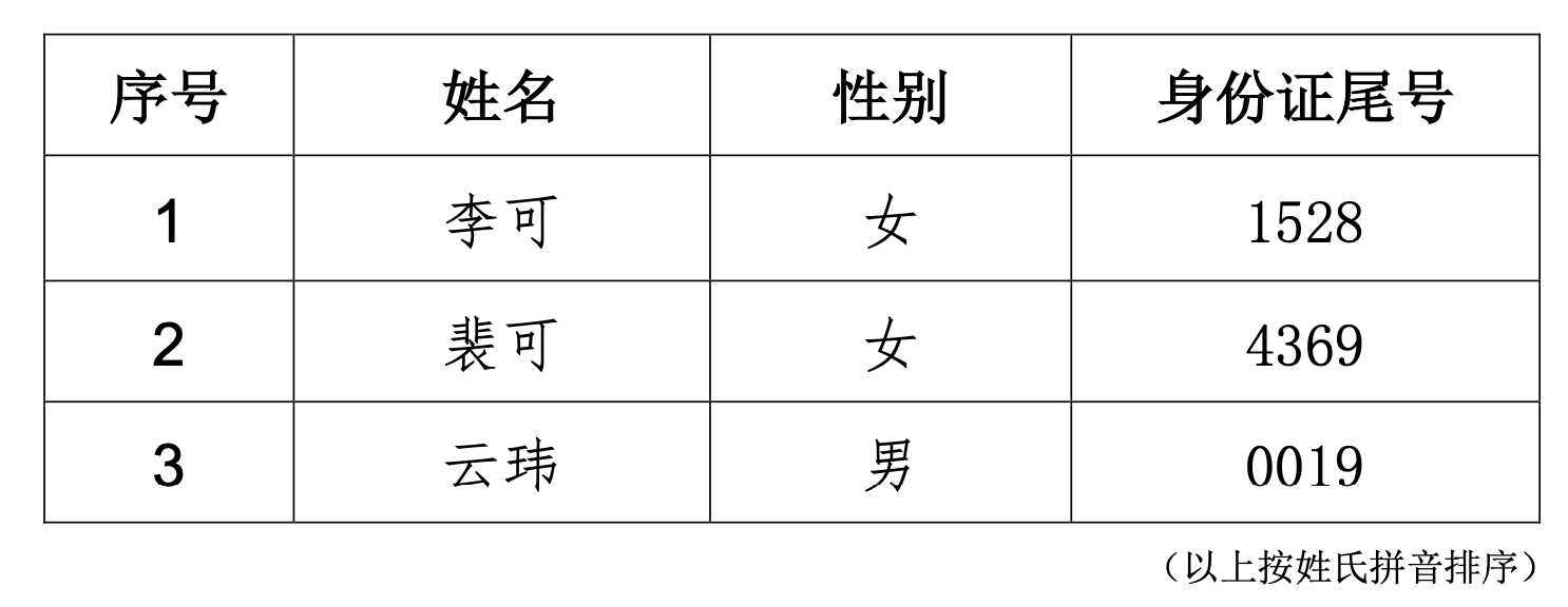 四、面试人员名单
