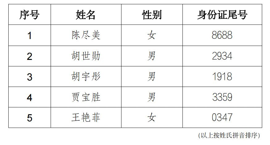 四、面试人员名单