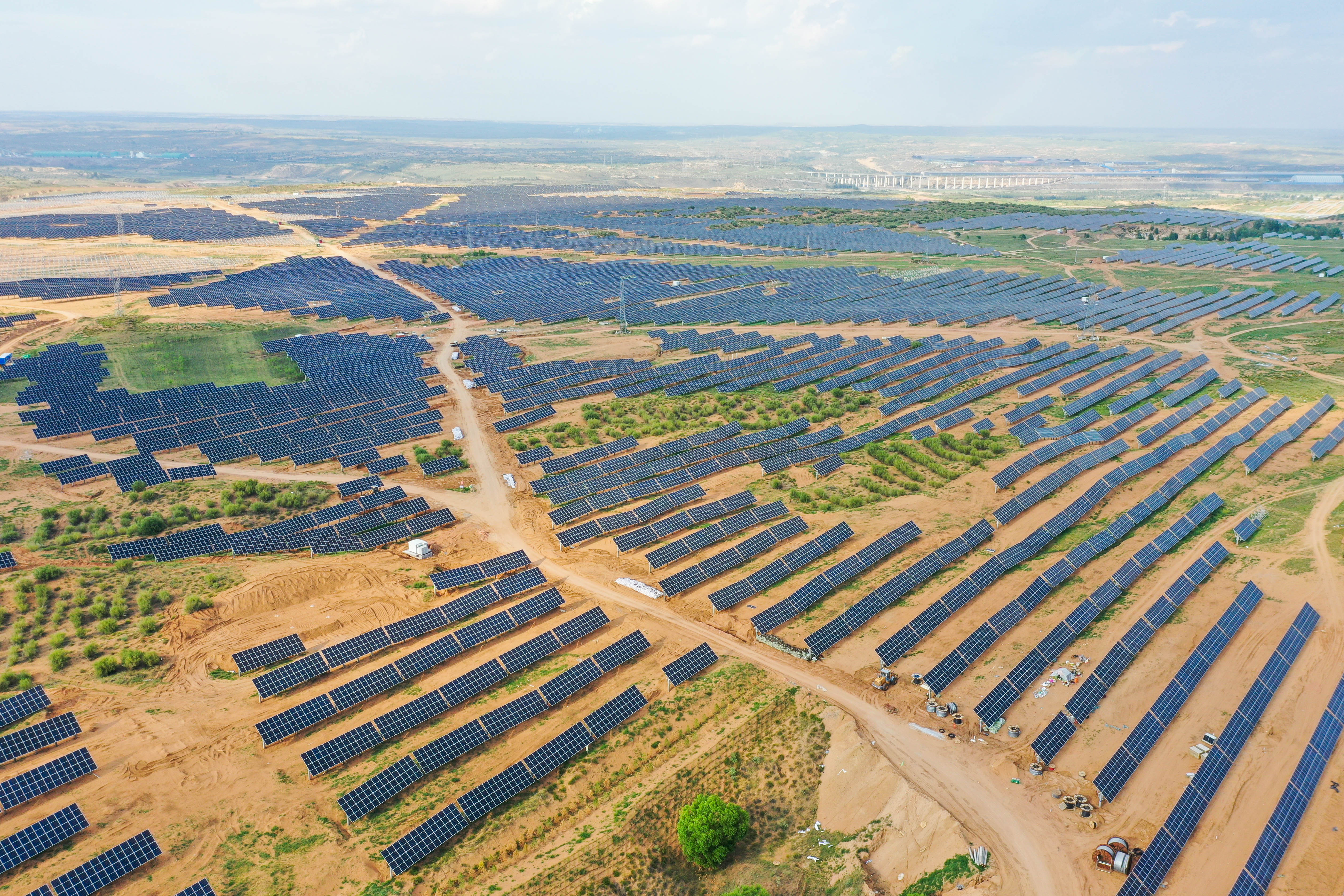 When walking on the coal mine subsidence area in Wulanmulun town, Ordos city, Inner Mongolia Autonomous Region (Inner Mongolia), what used to be vast empty swathes of sand blown by relentless winds, is now an orderly layout of endless photovoltaic panels.