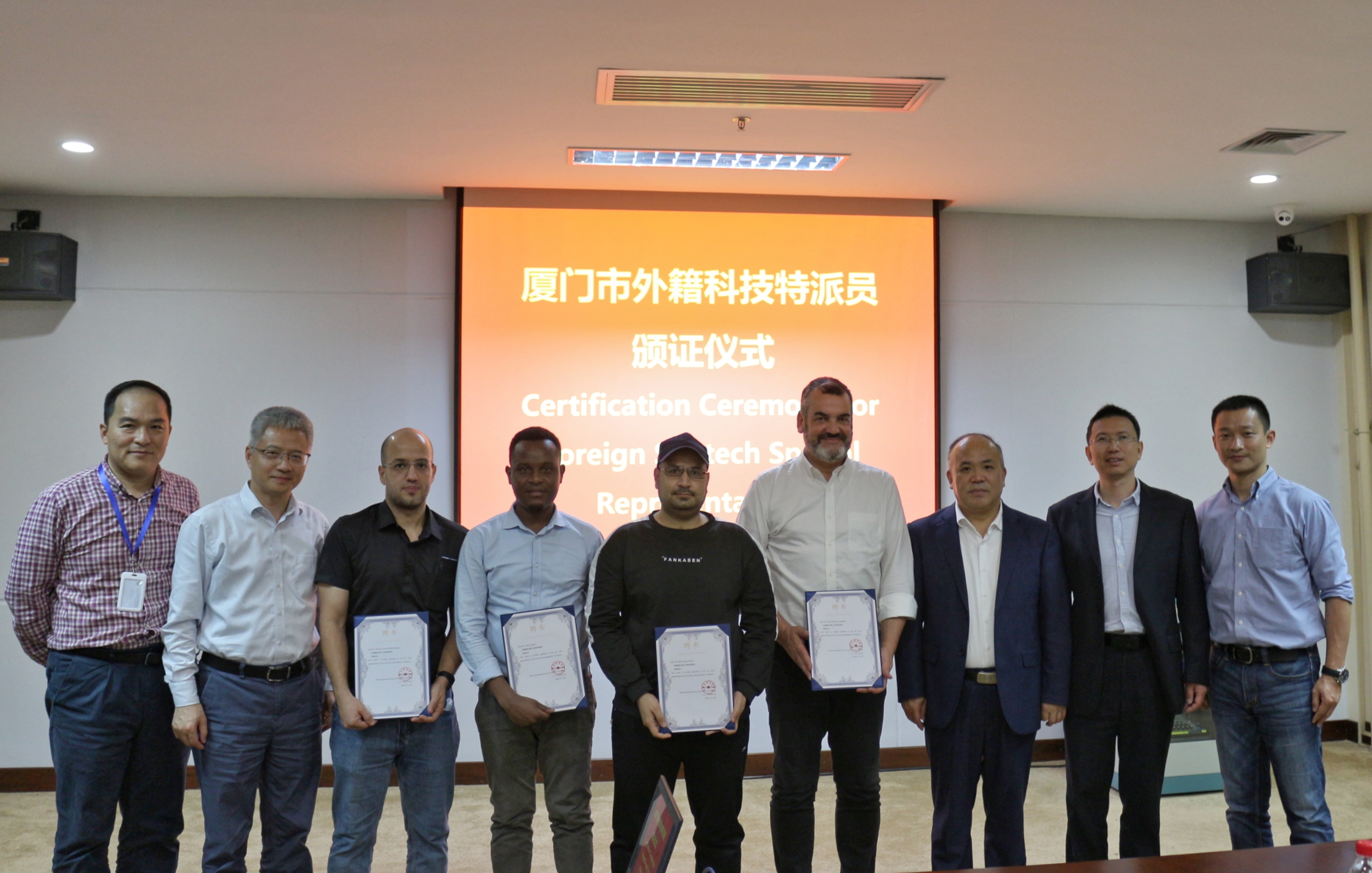 On March 15, four foreign sci-tech commissioners were awarded sci-tech commissioners' certificates by the Xiamen Bureau of Science and Technology, making them official members of the city's commissioner team.