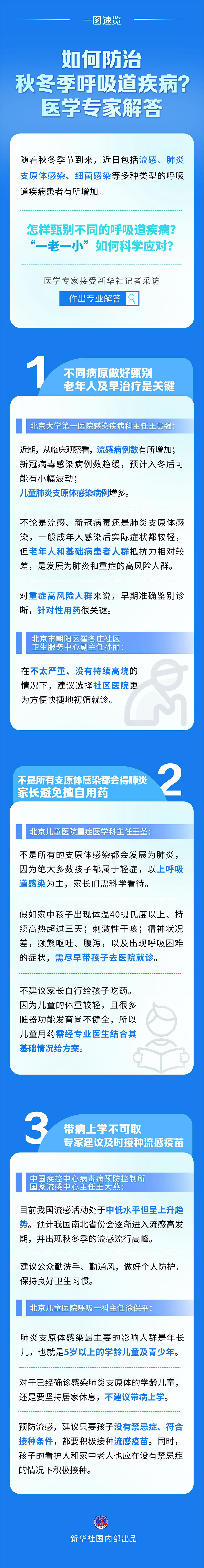 随着秋冬季节到来,近日包括流感、肺炎支原体感染、细菌感染等多种类型的呼吸道疾病患者有所增加。怎样甄别不同的呼吸道疾病?“一老一小”如何科学应对?针对公众热点关切,国家卫生健康委日前组织医学专家接受新华社记者采访,作出专业解答。