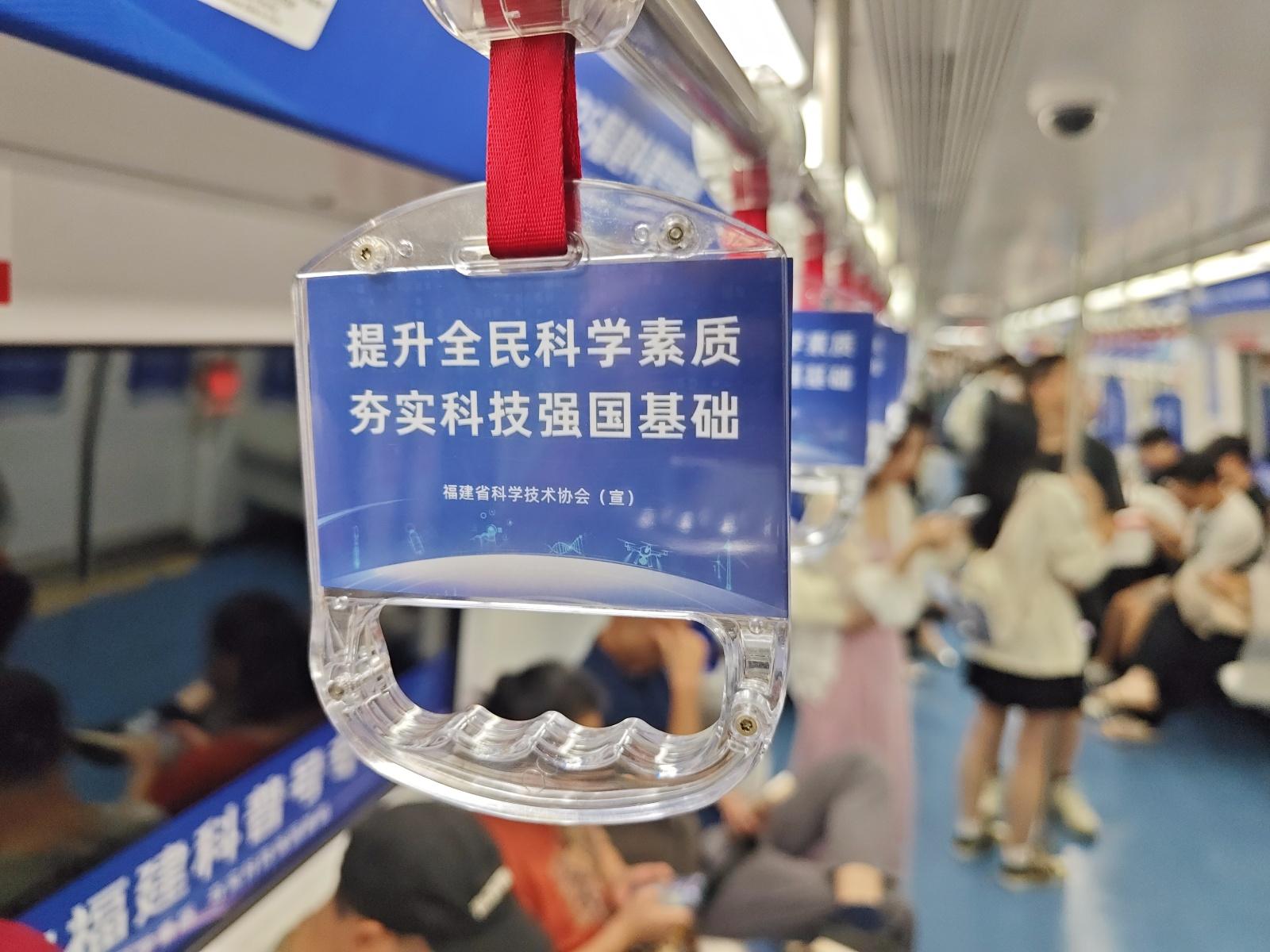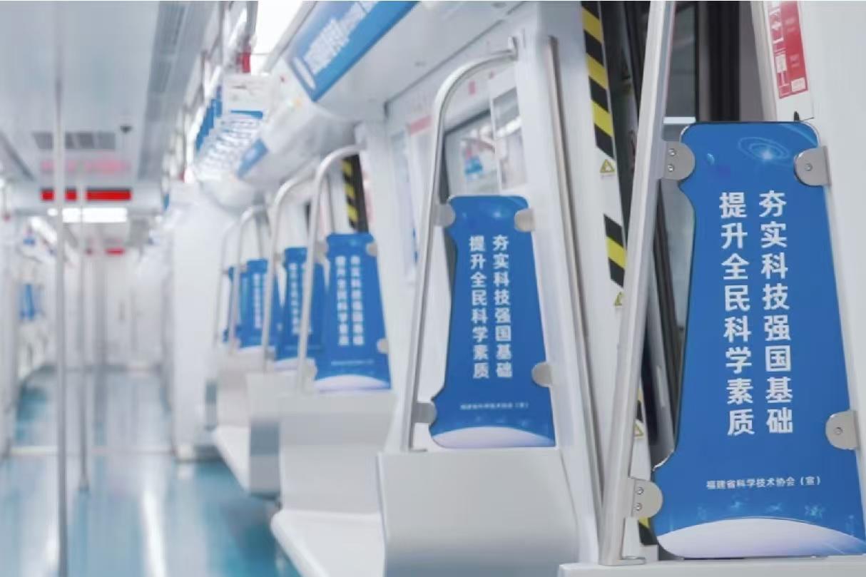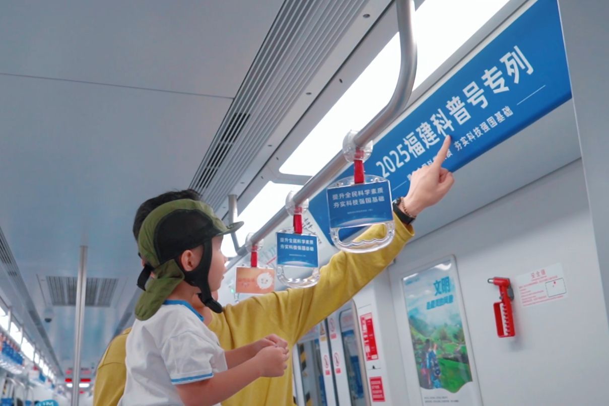 据悉,“福建科普号”地铁专列由福建省科协着力打造,以“提升全民科学素质,夯实科技强国基础”为主题,车厢布置分为闽籍科学家故事、中国科学十大进展两大主题内容,并在地铁车厢内的手扶牌、车门、车窗、座椅侧玻璃等宣传展现全国科普月元素,在福州地铁1000多个大屏投放科普宣传视频。