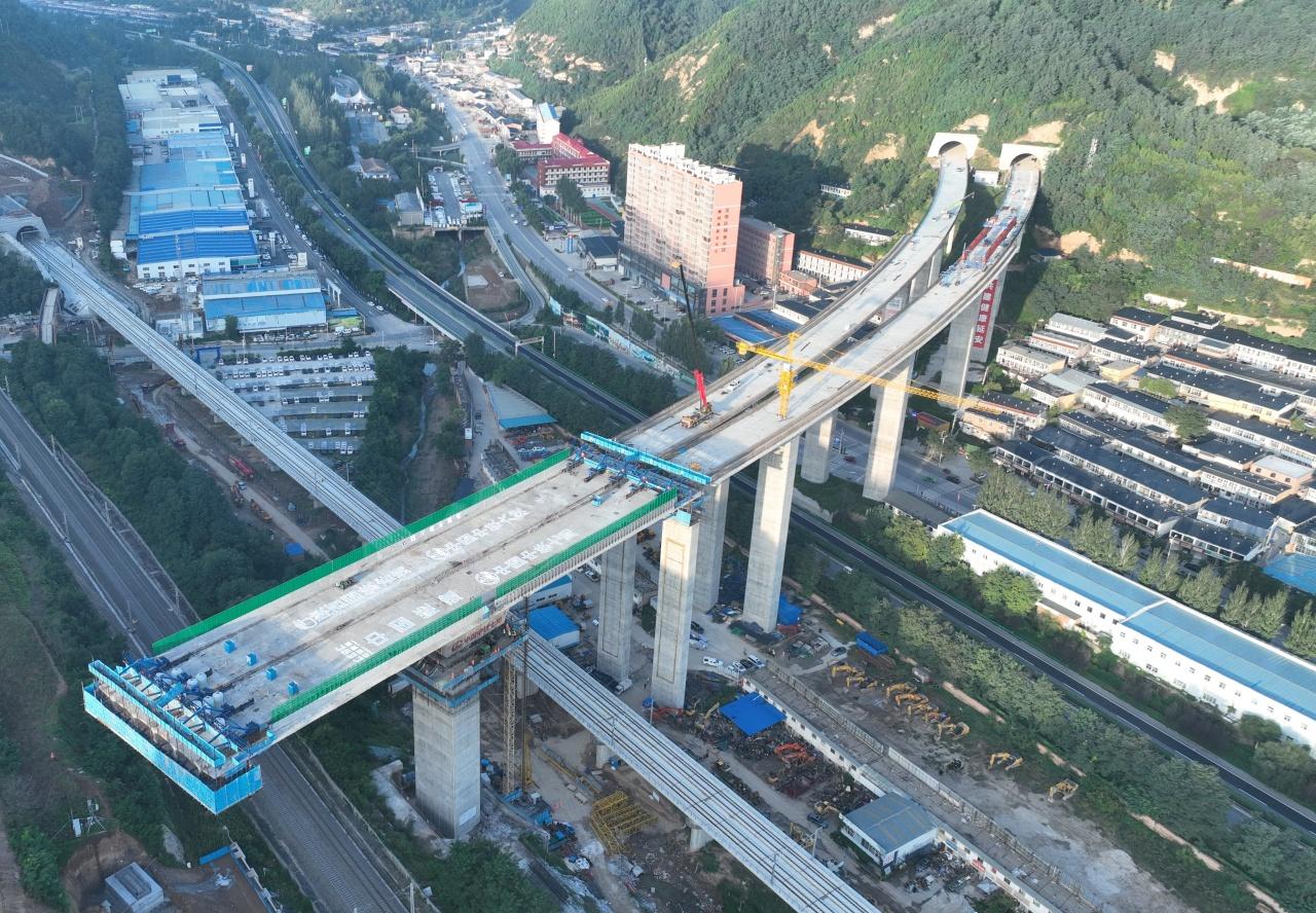 中国葛洲坝集团第三工程有限公司党委委员、副总经理赵芳甫表示,南泥湾机场大桥全长638米,横跨包西铁路、西延高铁等两条铁路干线及三条公路,施工需克服复杂地质与极高安全要求。