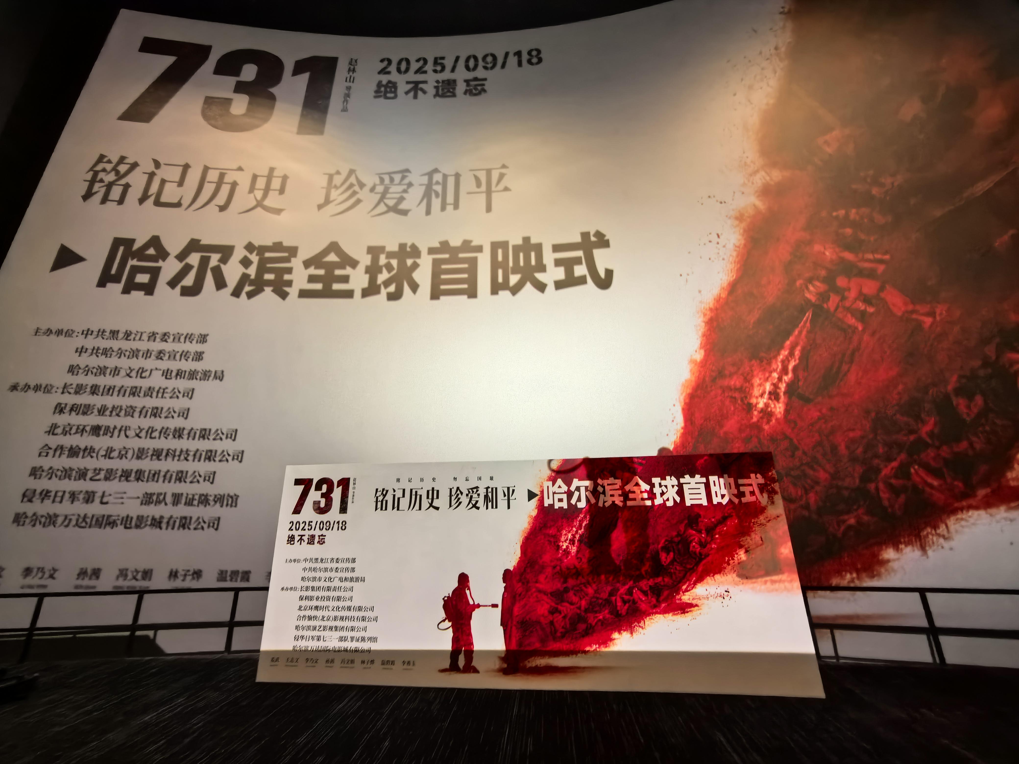 9月17日,电影《731》全球首映式,在哈尔滨市举行。首映式以“不能忘·不敢忘·不会忘——铭记历史 珍爱和平”为主题,开启一场跨越时空的历史对话。该部影片将于9月18日起,在全球多地上映。