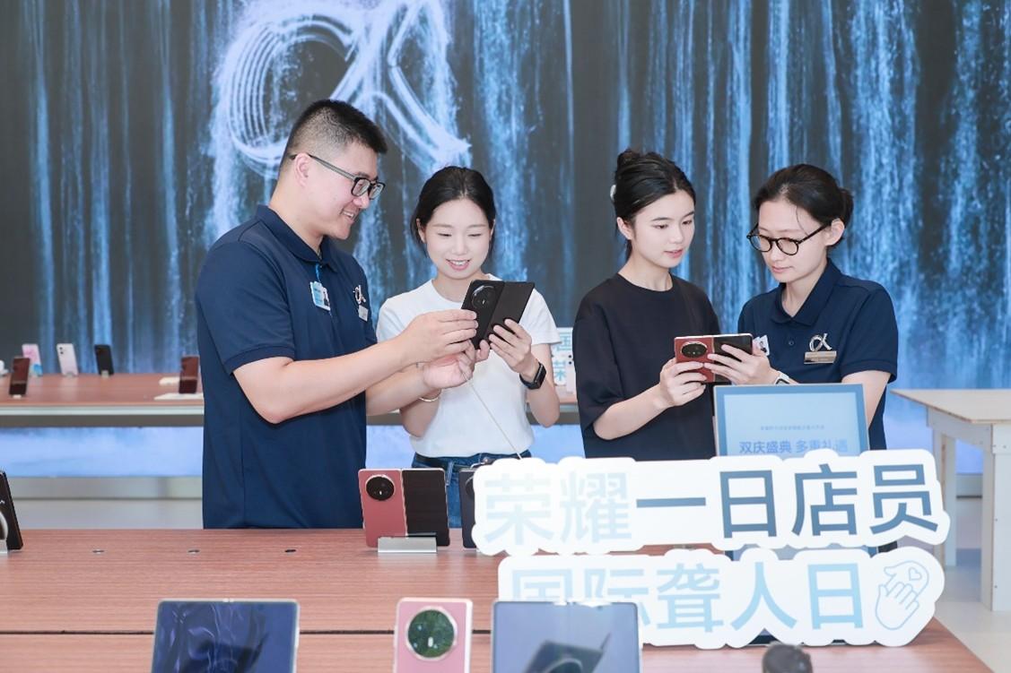 9月27日,在国际聋人日前夕,荣耀与深圳市聋人协会在荣耀阿尔法全球旗舰店举办“2025国际聋人日:一日店员”活动。