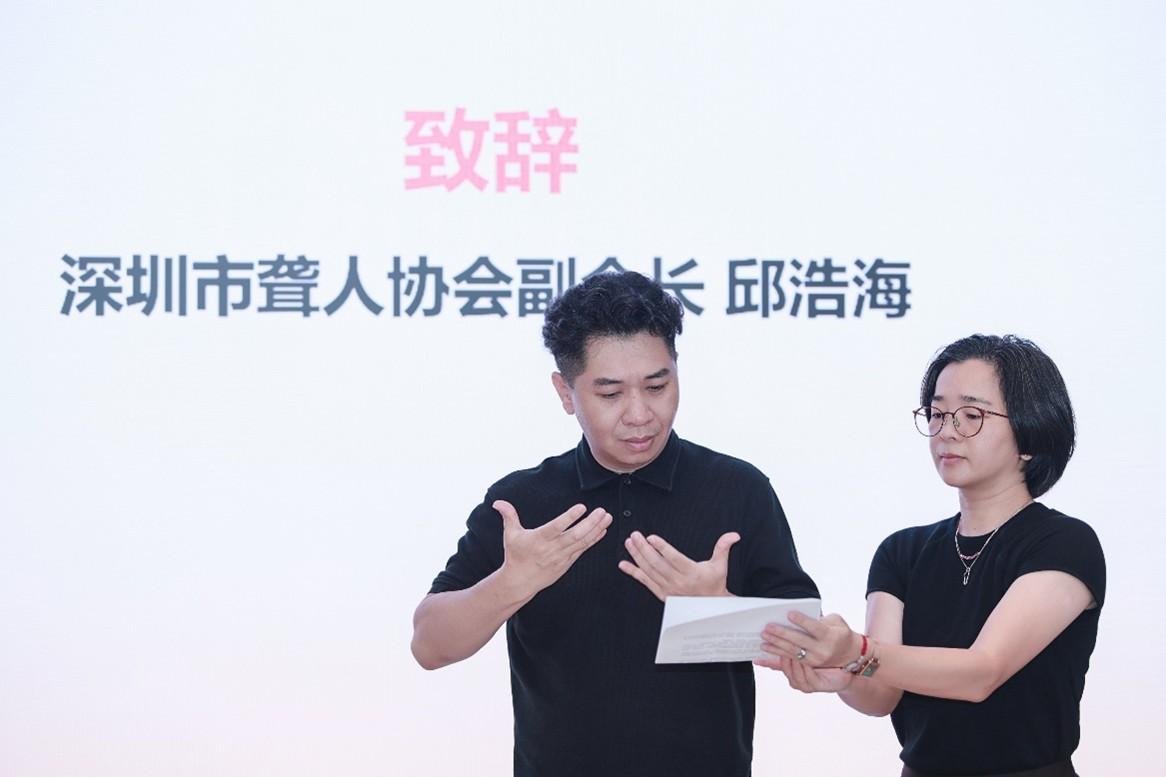 深圳市聋人协会副会长邱浩海以手语表示:“荣耀用技术搭建了沟通桥梁,也用就业体验让社会看见了听障群体的价值,希望能和荣耀等更多企业携手,让更多人了解无障碍理念,让每位听障人士都能在数字世界享有平等的权利机会。”