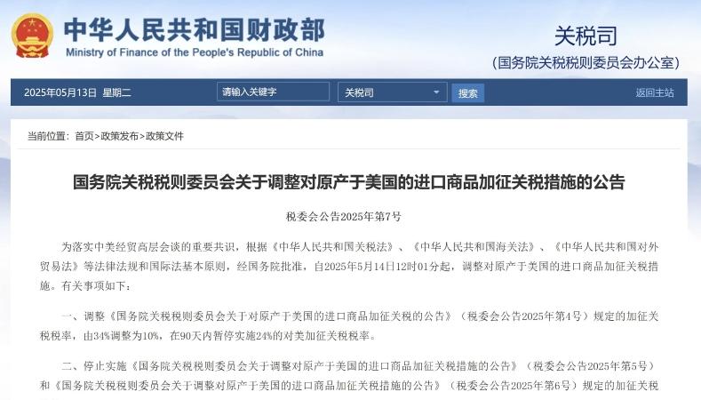 中方调整对美加征关税措施