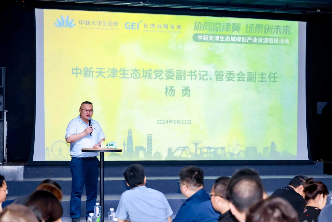 为进一步推动京津冀协同发展走深走实,促进京津两地科技创新和产业体系融合,加快建设国家绿色发展示范区升级版,5月22日,中新天津生态城在北京举办“绿创产业资源链接会”。此次活动以生态城绿色低碳场景为切入点,促进生态城与北京企业开展合作,为产业供需双方搭建桥梁,让企业和场景实现“双向奔赴”,打造“京津绿色低碳产业生态圈”。