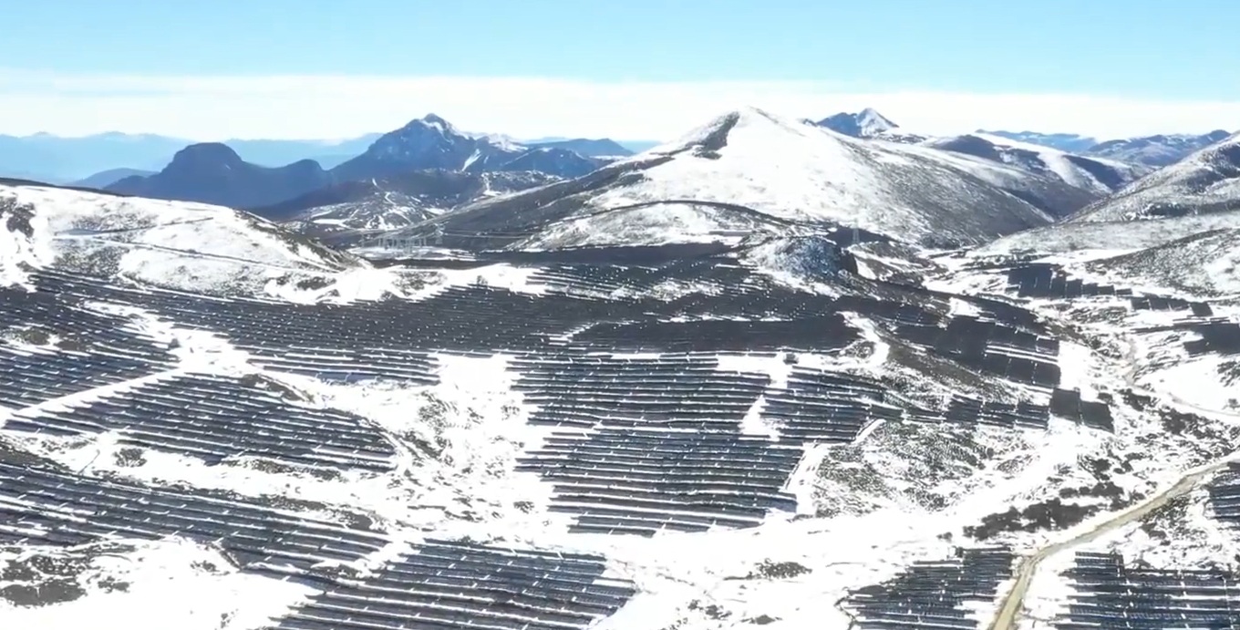2月17日,在海拔4000多米的四川省凉山州木里县争西牧场,300多亩绵延的山峦身披“银甲”,在皑皑白雪映衬下闪闪发光。这里是刚刚并网发电的四川省重点工程——卡基娃水电站水光互补光伏项目现场。